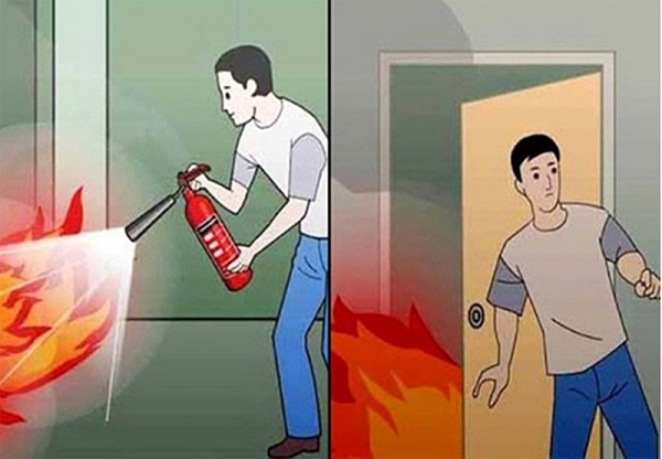 - Nếu nhìn thấy khói bốc lên từ phía dưới cửa thì không được mở cửa.