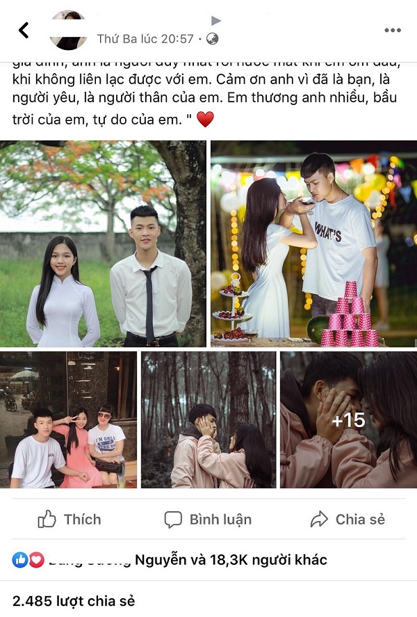 Mới đây, một cô bạn có tên Lương Hằng Hải (ở Ninh Bình) đã chia sẻ câu chuyện tình yêu với chàng trai năm 17 tuổi của mình, bài viết nhanh chóng nhận được rất nhiều sự quan tâm của cộng đồng mạng.