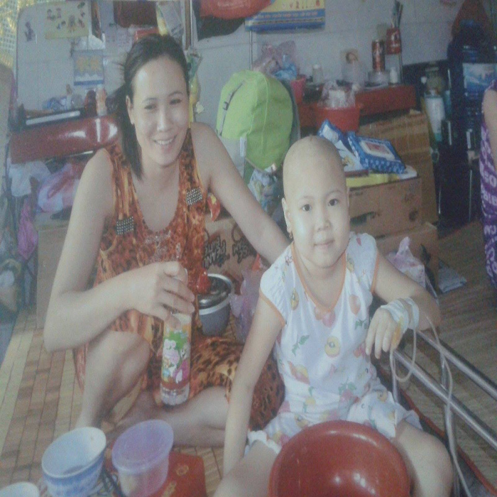 Chị Hoàng Thị Hoà bên đứa con thứ hai đang bị ung thư máu. Để tiện điều trị cho con, mấy năm gần đây, chị Hoà vào ở hẳn tại TP.HCM, vừa làm thêm kiếm tiền, vừa giúp cháu Quỳnh Anh điều trị. |