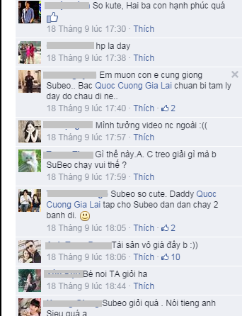 Sau khi đoạn clip được chia sẻ, nhiều bạn bè và cư dân mạng đã tặng những lời khen ngợi có cánh tới hai bố con Cường đô la. Nhiều người cảm thấy thán phục và muốn con mình giống như Quý tử nhà Hồ Ngọc Hà còn nhỏ tuổi mà nói tiếng Aanh cực chuẩn như người bản địa. "Xem nè, nói chuyện với con bằng tiếng Anh luôn kìa, trộm vía nói tiếng Anh như bản địa, anh dạy phải không", "tiếng Anh như gió vậy".