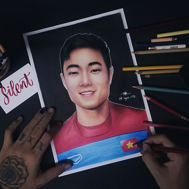Sau khi gây sốt cộng đồng mạng với bức vẽ chân dung cầu thủ Quang Hải suốt 16 tiếng đồng hồ thì mới đây, chàng trai Huy Nguyễn Kym (Đà Nẵng) lại tiếp tục khiến nhiều cư dân mạng bất ngờ khi thực hiện một bức vẽ khác.