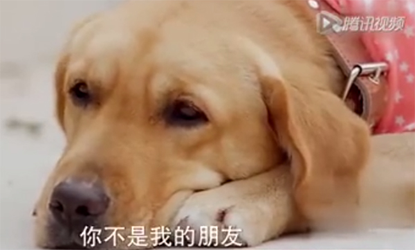 Nhìn ánh mắt đượm buồn của chú chó bất kì ai cũng không khỏi xúc động. Ảnh cắt từ clip. |