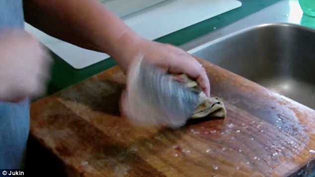 Một người nội trợ đã choáng váng khi con cá thuộc loài cá vây cung đã bị chặt đầu vẫn di chuyển trong tay bà thậm chí quẫy mạnh. Trong clip, con cá đã hoàn toàn được rút ruột và làm sạch các cơ quan nội tạng và phần đầu của nó đã nằm trong bồn rửa. Người phụ nữ sử dụng chiếc khăn để quấn chặt để giữ cho con cá không bị trượt khỏi tay.