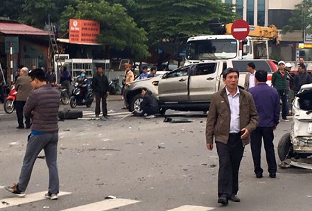 Chiếc Ford Ranger lưu thông trên đường (ở Hải Dương) đâm liên hoàn 3 ôtô, xe máy. Hậu quả tai nạn khiến 1 người tử vong, 3 người bị thương.