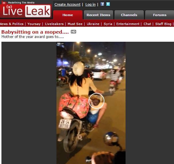 Đoạn clip ghi lại cảnh một phụ nữ Việt tham gia giao thông với đứa bé ngủ ngon trên đùi đang được chia sẻ rất nhiều trên mạng xã hội với những ý kiến trái chiều.