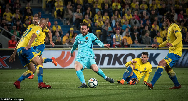 Nhập cuộc tốt và có được bàn thắng mở tỷ số từ quả đá phạt hiểm hóc của Messi. Nhưng bất ngờ đã xảy ra. Từ quả phạt góc, Aguirregaray đánh đầu dội cột dọc và chạm tay Digne trong vòng cấm, trọng tài ngày lập tức cho Las Palmas được hưởng quả phạt đền.
