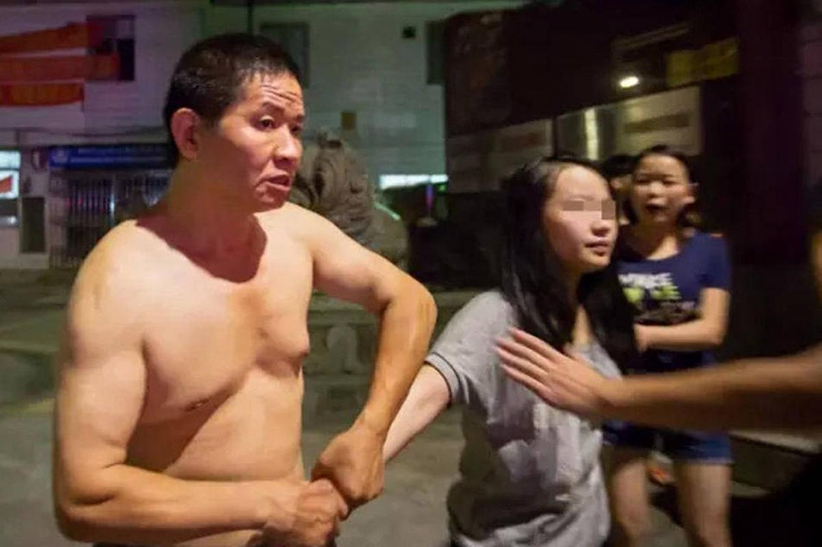 Ông Kiều đánh đập con gái ruột 16 tuổi ngay giữa phố. |