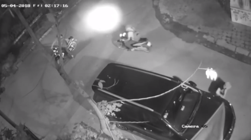 Hình ảnh camera ghi lại cho thấy, nhóm trộm di chuyển trên 2 chiếc xe máy.
