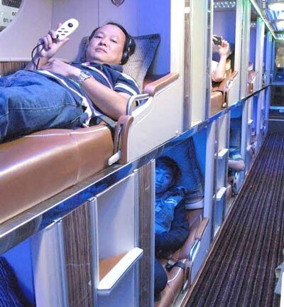“Chuyên cơ mặt đất” là chiếc xe hiện đại, đầy đủ tiện nghi và tích hợp massage giúp khách thư giãn trong chuyến đi dài. Tuy nhiên, sau nửa tháng chạy thử, chiếc xe này có nguy cơ dừng hoạt động bởi chưa được cấp phép vào bến.