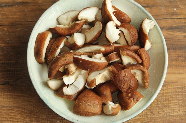 - Nấm hương rửa sạch thái miếng vừa ăn.