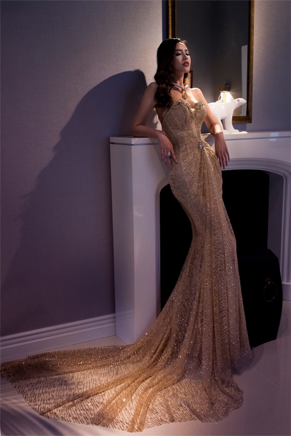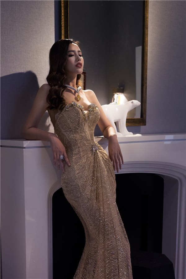 Với những chi tiết cầu kì, tỉ mỉ được thiết kế và cắt may hoàn toàn thủ công, Mai Phương Thúy "lột xác" thành một cô gái vô cùng quyến rũ nhưng cũng không kém phần huyền bí, tạo ra những cảm xúc đặc biệt, mê mẩn khôn nguôi.