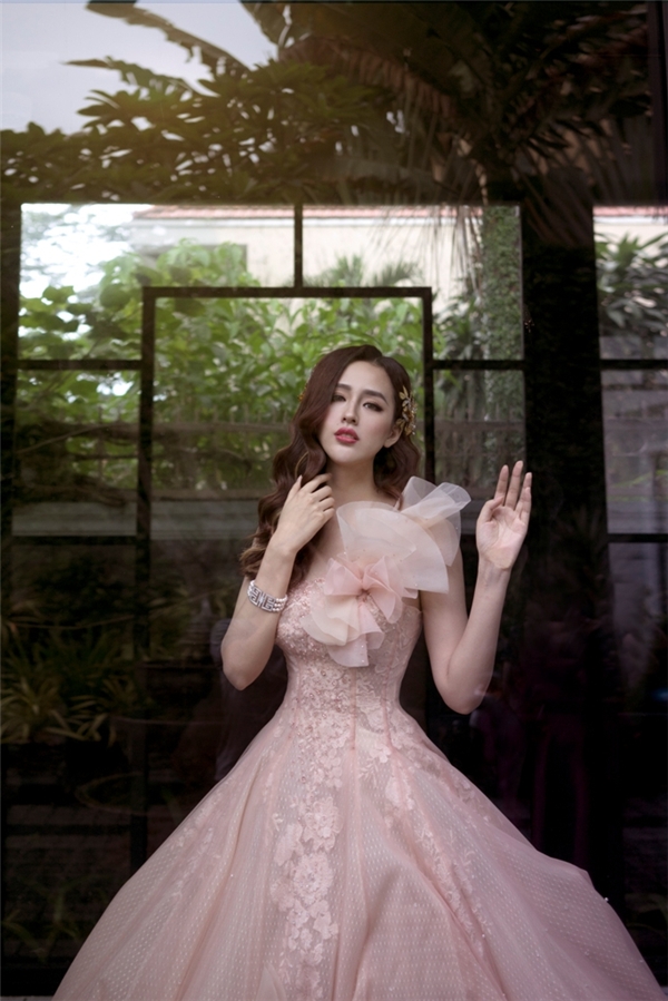 Mỹ nhân trở nên nhẹ nhàng, lãng mạn trong bộ váy cưới màu hồng bồng bềnh. |