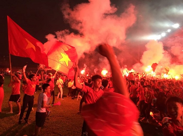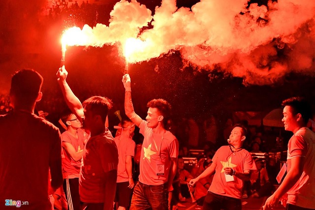 Ngay sau khi tiếng còi kết thúc trận đấu, rất đông cổ động viên, người hâm mộ trái bòng tròn trên khắp cả nước đã xuống đường để ăn mừng chiến thắng của Olympic Việt Nam.