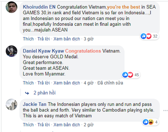 Cũng có những dòng bình luận không quên động viên đội nhà: "U22 Indonesia đã chơi tốt trong trận đấu này. Tôi hy vọng đội tuyển quốc gia có thể sử dụng các cầu thủ trẻ này".