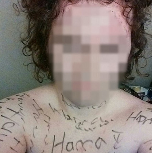| Một anh chàng viết chi chít tên Hanna lên người để chứng tỏ tình cảm |