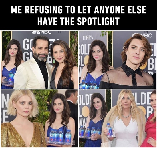 Tuy vậy, thật bất ngờ khi người giành được sự chú ý nhiều nhất trên thảm đỏ lễ trao giải đình đám này lại không phải bất kỳ ngôi sao Hollywood nào mà lại thuộc về một nữ người mẫu ít ai biết đến với khay nước luôn kè kè trên tay.