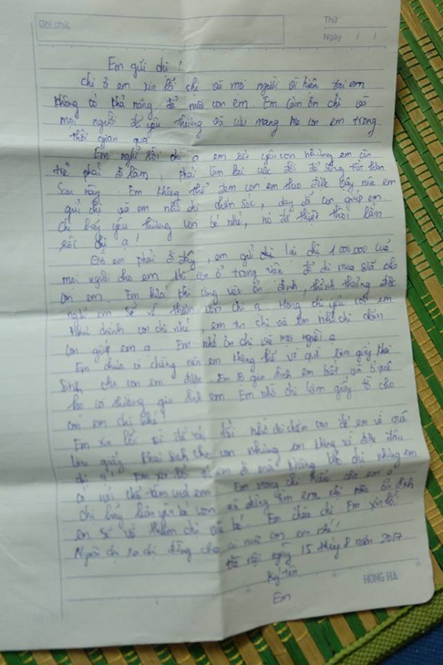 Lá thư cô gái để lại cho chị Hòa - Ảnh: báo Trí thức trẻ |
