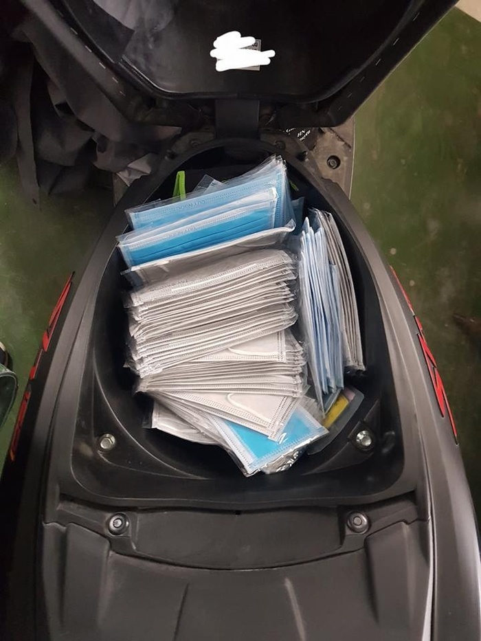 Cốp xe lúc nào cũng chất đầy khẩu trang. |