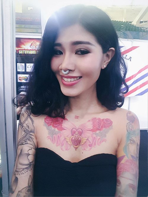 Hoàng Thị Minh Thái, cô gái đam mê xăm hình. |