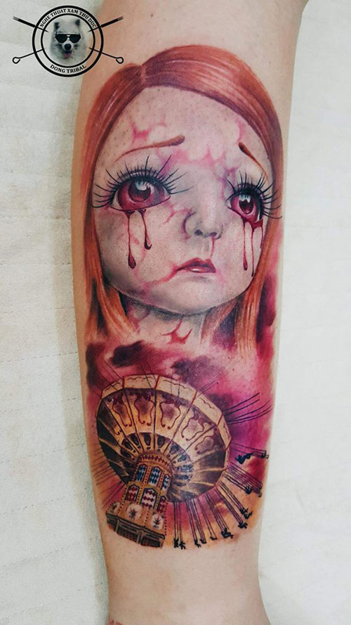 | Hình xăm búp bê Latidoll Minh Thái xăm trong suốt 11 tiếng liền. |