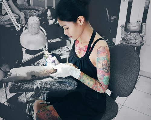 Cô nàng hiện tại đang là một nữ thợ xăm có tiếng đất Sài thành |