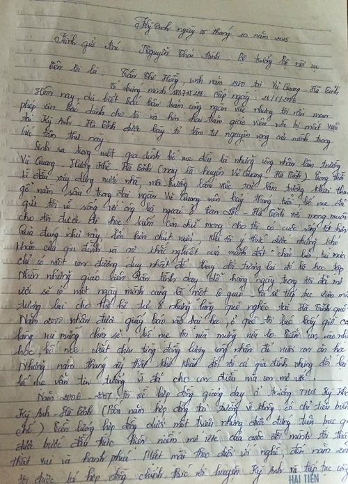 Bức thư của cô giáo Trần Thị Hồng gửi Bộ trưởng Nguyễn Thái Bình |