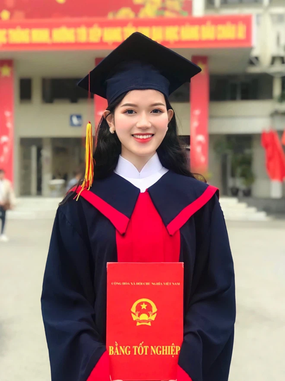 Nữ giáo viên tương lai sở hữu gương mặt xinh xắn, được nhận xét có nét giống Hoa hậu Đỗ Hà. Ngoài đời, cô giáo cũng có thành tích học cực tốt.