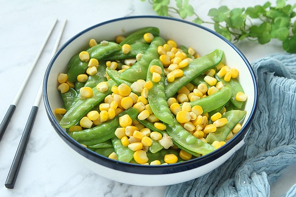 Đậu ván giòn giòn hòa quyện cùng với vị ngọt của ngô khiến món ăn ngon miệng vô cùng.