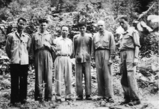 Từ trái sang phải: Dương Bạch Mai, Ernst Frey / Nguyễn Dân, Trường Chinh, X, Georges Wchter / Hồ Chí Thọ, Rudy Schrôder / Lê Đức Nhân (Bộ ảnh sưu tầm của H. Schütte). |