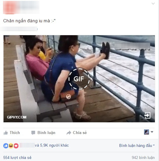 Hình ảnh một cô gái chân ngắn “không biết lượng sức mình”, bon chen gác chân lên lan can của một cái hồ khi ngồi trên ghế đá nhưng mãi chẳng thể chạm tới lan can như các bạn ngồi bên cạnh khiến kẻ cười người chê.
