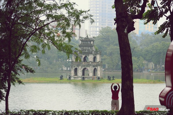 | Sáng hồ Gươm, cụ già thong dong tập thể dục |