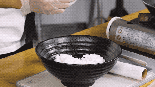 - Bước 2: Sau đó cho hỗn hợp cơm đã trộn vào một khuôn hình chữ nhật, dàn đều và ấn mạnh để định hình cơm.