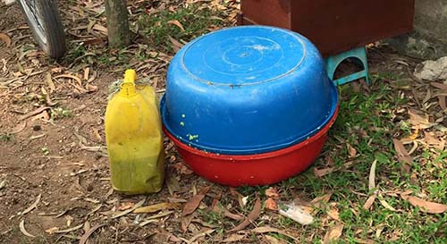 ![]() Can phẩm màu được đem đến nơi bán hàng để tiện "chế biến" cốm. (Ảnh Kinh tế đô thị). |