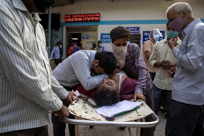 Bệnh viện Ấn Độ đang phải vật lộn với tình trạng thiếu oxy y tế và giường bệnh. Nhiều người chết trên cáng ngay bên ngoài bệnh viện.