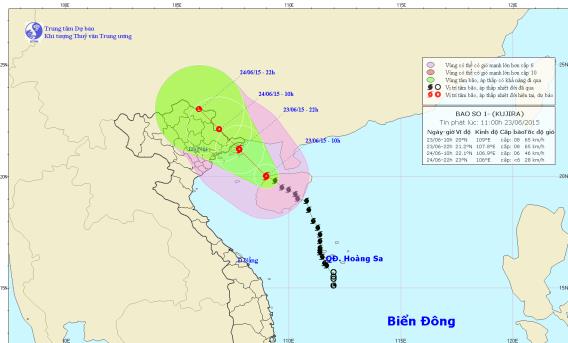 Dự báo trong 12 giờ tới, cơn bão số 1 di chuyển theo hướng Tây Bắc, mỗi giờ đi được khoảng 10-15km. Đến 22 giờ ngày 23/6, vị trí tâm bão ở vào khoảng 21,2 độ Vĩ Bắc; 107,8 độ Kinh Đông, trên vùng biển tỉnh Quảng Ninh. Sức gió mạnh nhất ở vùng gần tâm bão mạnh cấp 8 (tức là khoảng từ 60 đến 75km một giờ), giật cấp 9-10.