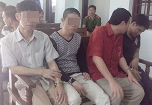 T. (thứ 2 từ trái sang) tại phiên tòa. |