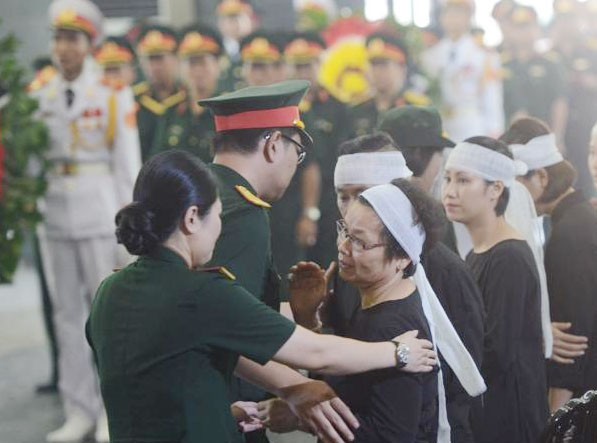 Trong giờ phút truy điệu, nhạc sĩ An Hiếu - con trai trưởng - thay mặt gia đình gửi lời cảm ơn đến các ban ngành, đoàn thể và nghệ sĩ. Đứng trước linh cữu ba, anh hứa sẽ cùng em gái Bông Mai chăm sóc mẹ và tiếp tục phát triển sự nghiệp của nhạc sĩ. |