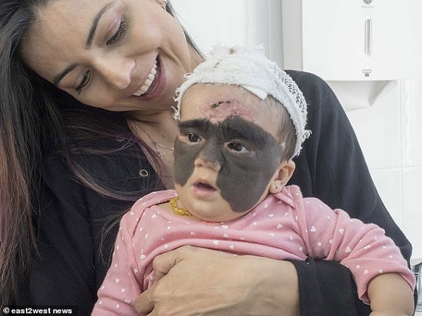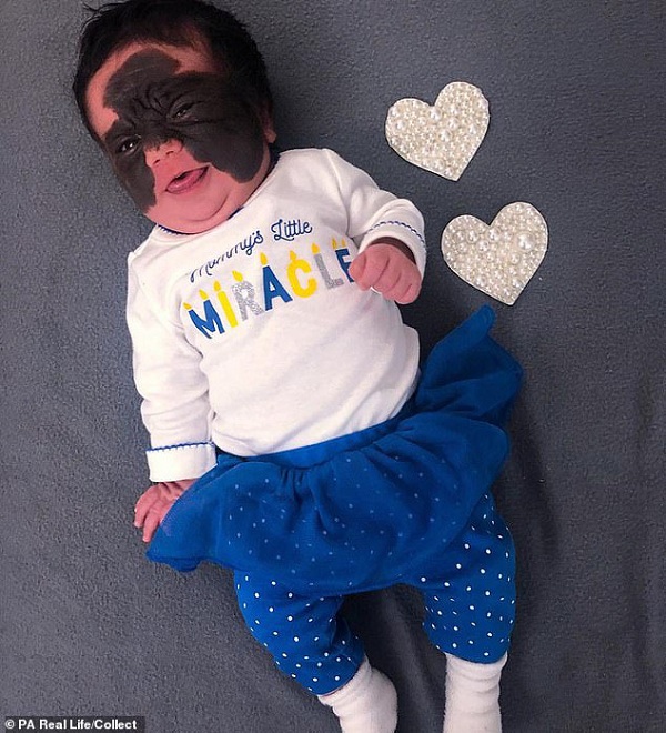 Bé Luna sinh ra với vết bớt đen to trên mặt. |