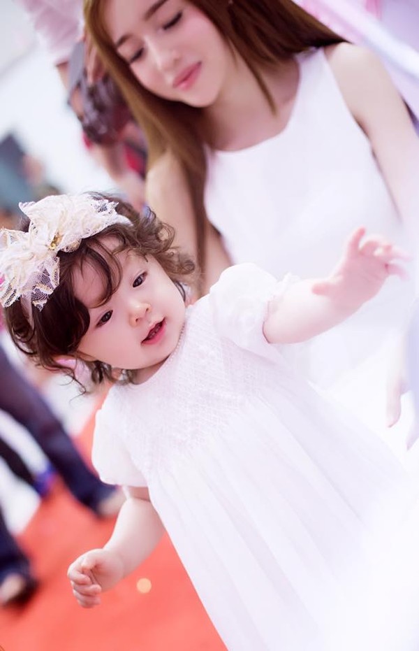 Con gái Elly Trần trông như búp bê với đôi mắt to tròn và mái tóc xoăn nhẹ. |