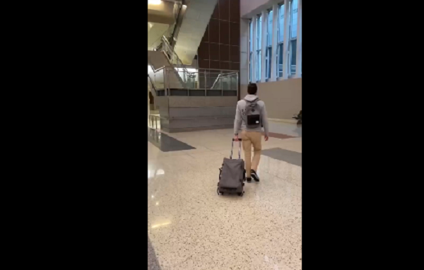 Chàng trai nói sẽ chờ cô gái, ôm cô lần cuối rồi kéo vali quay trở về. Ảnh cắt từ video |