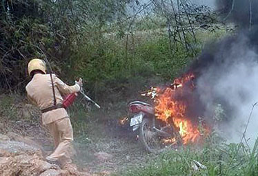 Qua kiểm tra, người điều khiển là học sinh cấp 3, lực lượng CSGT đã lập biên bản, tạm giữ giấy tờ xe. Nữ sinh này sau đó gọi điện nhờ người thân đến giúp. Khi cha của học sinh có mặt, xin tổ cảnh sát làm nhiệm vụ bỏ qua vi phạm nhưng không được, người này đã châm lửa đốt chiếc xe.