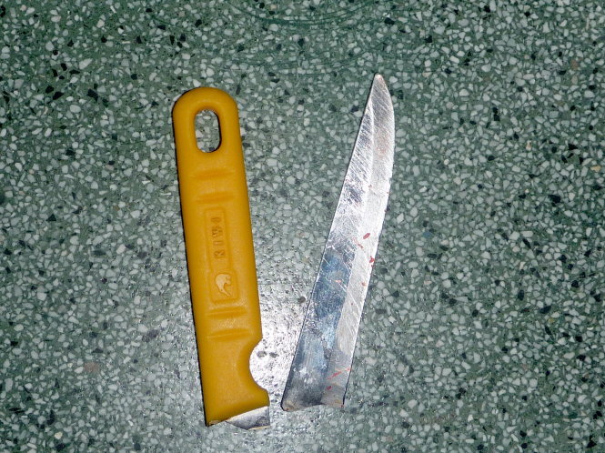 Con dao được cơ quan chức năng thu giữ tại hiện trường - Ảnh: Tuổi trẻ |