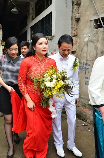 ![]() Hôn nay, thời tiết Hà Nội se lạnh và tạnh ráo rất thuận lợi cho đoàn nhà trai đi đón dâu. 8h sáng nay, con trai của danh ca Chế Linh cùng gia đình xuất phát đi đón dâu từ căn nhà trên phố Đào Tấn (Hà Nội) sang nhà gái nằm trên đường Nguyễn Trãi làm lễ rước dâu. |