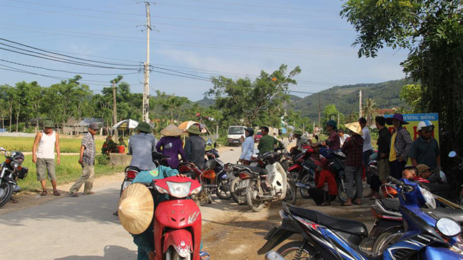 | Người dân đứng từ xa theo dõi cơ quan chức năng khai quật mộ - Ảnh: Thanh Niên |