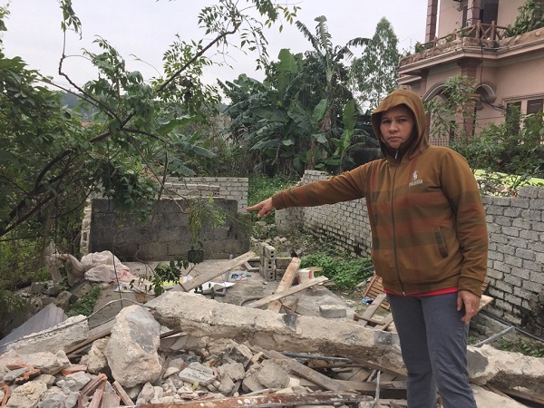 Chị Hựu bên căn nhà bị phá. |