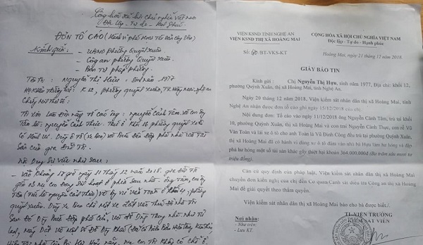 Sự việc này chị cũng đã gửi đơn lên cơ quan Công an và VKSND TX Hoàng Mai. Tuy nhiên, khi cơ quan chức năng đang bắt đầu vào cuộc giải quyết thì tiếp tục xảy ra sự việc trên. Liên tiếp bị uy hiếp, rồi bị phá cả ngôi nhà khiến cuộc sống của chị Hựu cùng những người con nhỏ bị ảnh hưởng.