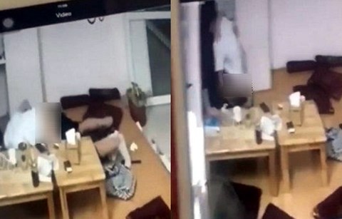 Hình ảnh đôi trai gái "mây mưa" trong quán trà sữa - Ảnh cắt từ clip |