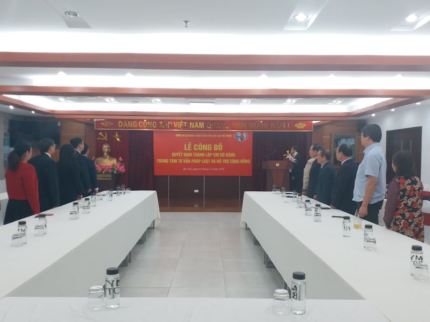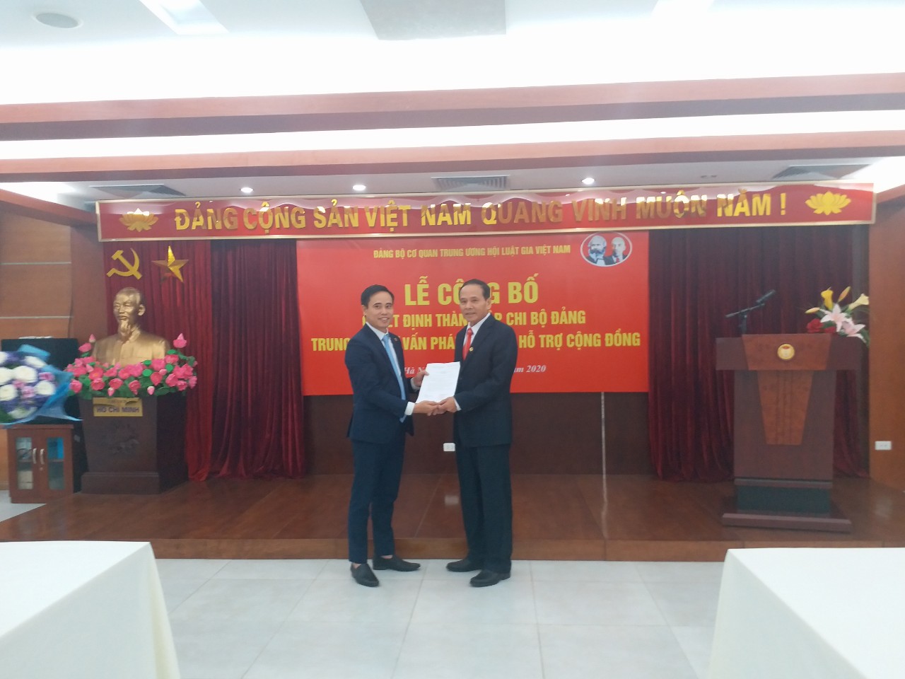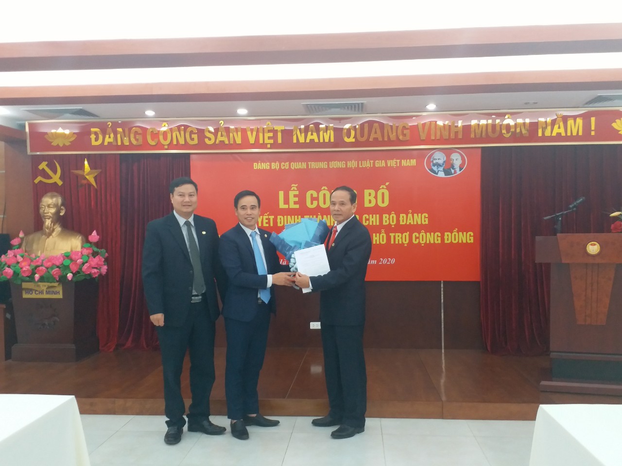 Ngày 3/12, được sự đồng ý của Đảng ủy cơ quan, Đảng bộ cơ quan Trung ương Hội long trọng tổ chức lễ công bố quyết định thành lập chi bộ trung tâm Tư vấn pháp luật và Hỗ trợ cộng đồng tại trụ sở Trung ương hội Luật gia Việt Nam.