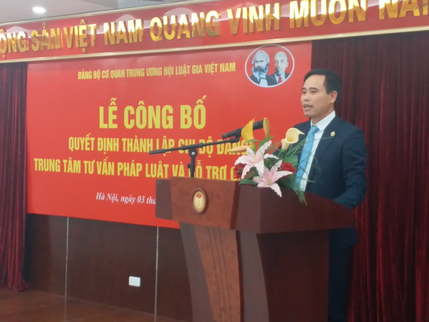 Ngày 3/12, tại trụ sở Trung ương hội Luật gia Việt Nam long trọng tổ chức lễ công bố quyết định thành lập chi bộ Đảng trung tâm Tư vấn pháp luật và Hỗ trợ cộng đồng.