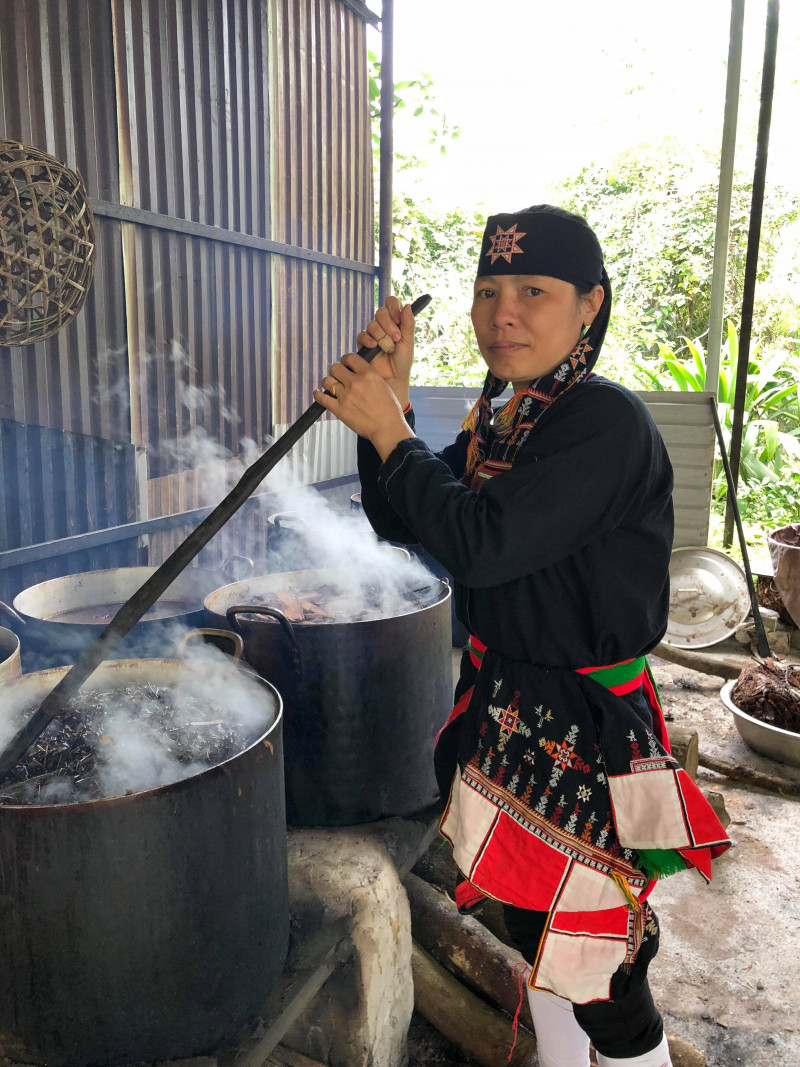| Lương y Triệu Thị Tơ đang ấu cao lá người Dao |